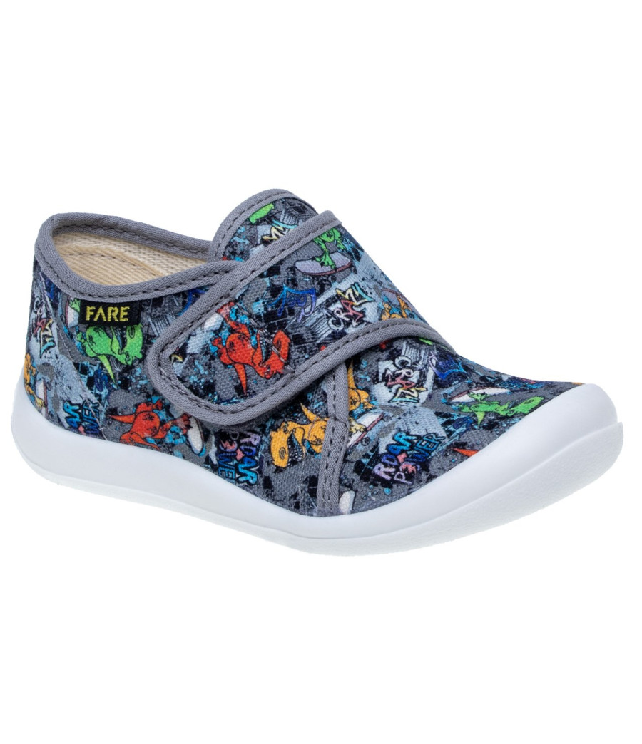 FARE KLASIK Dětské papuče na suchý zip šedé